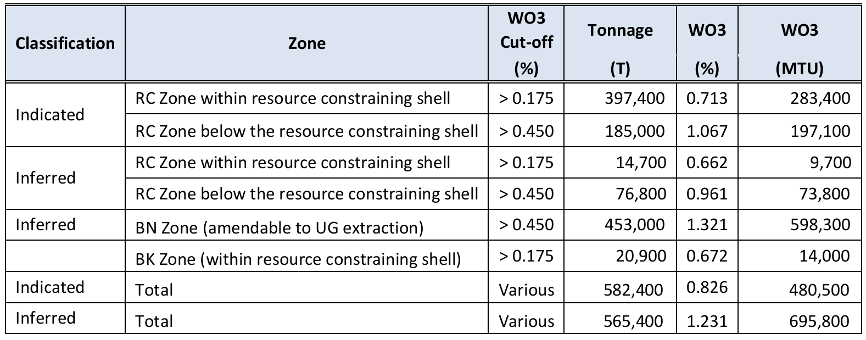 - The drilling was focused on the expansion of the tungsten resource at the Ridley Creek (RC), and BN zones (see Figure 1) and the identification of new zones. Every hole drilled was observed to intersect the calc silicate (the main host rock for tungsten mineralization) that contains zones with variable concentrations of scheelite (tungsten mineral) as observed by Ultra-Violet (UV) lamping in the core1.